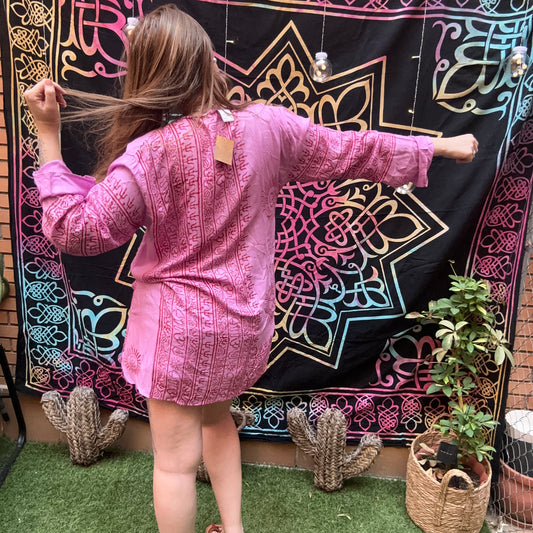 Túnica Bohemia Rosa- Espíritu libre y Estilo Artesanal